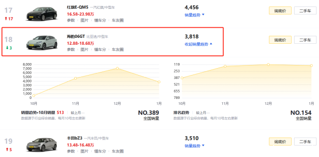 笔据官方给出的汽车销量排名榜来看,海豹06GT的月成交量不如同品牌其他车型出色,该款车的月均销量在4000+台傍边逗留,巅峰时期也卖到了7000+台,荟萃其定位来看,这么的收货也曾很可以的。25款海豹06GT是一款纯电中型车,因此纯电续航里程是个回绝刻薄的存在,该款车的电板容量有59.52kWh和72.96kWh两种,对应的CLTC纯电续航里程为505km、550km和605km三个段位,基本贴合普通使用,有家充桩或用车环境较为单一的话,选拔505km车型就实足了。低配版车型在400V高压快充平台赋能下,仅需0.37小时就能完结30%到80%快充,如若工夫允许,选拔8.5小时慢充用车费本会更低。