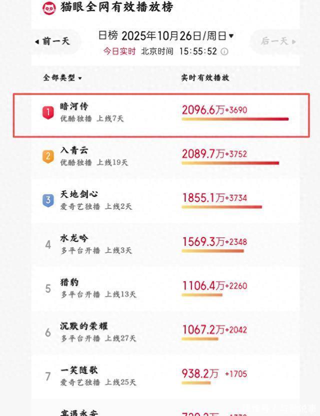 我想那一定是它——《暗河传》 开播首日就打破7500,次日破9000,刷新了武侠剧最快记录。 不得不说,这部剧手脚《少年歌行》的前传,拍的是真可以。