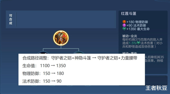 人命值擢升到1350点后,被迫灼烧的伤害也会擢升,加多的30点物理防范在濒临战边时坦度也会更高。关于坦克来说,是全主张的加强,基本是前期第一件必出的装备。