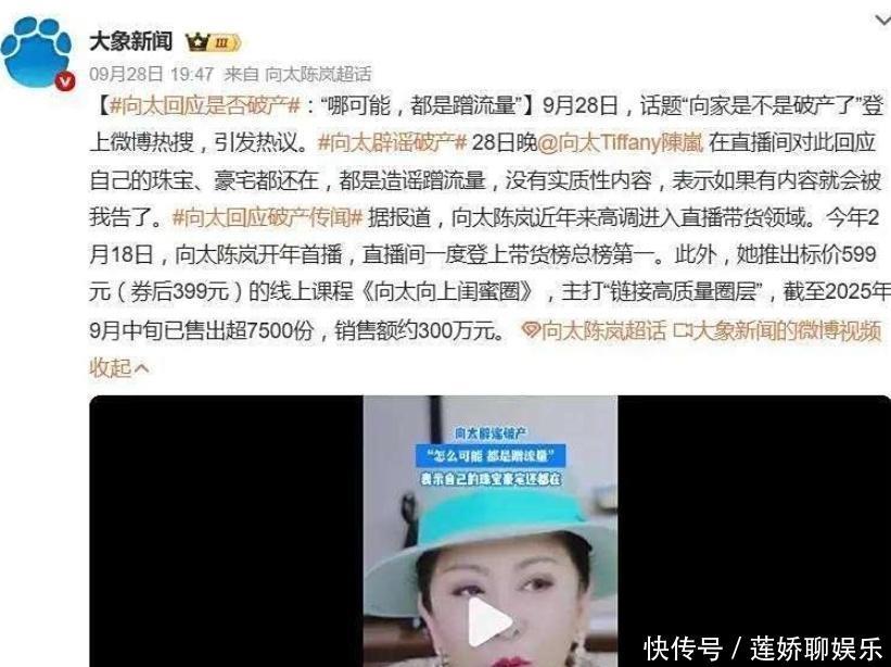 9月28昼夜深,"向家破产"话题空降热搜榜首。