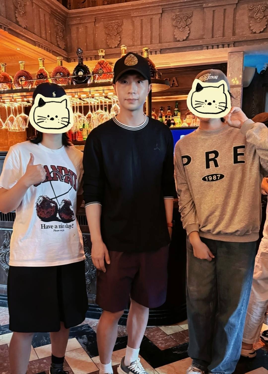 他东说念主挺好的,合照时挑升摘下了口罩,看起来皮肤依然那么白,五官依然那么帅气。