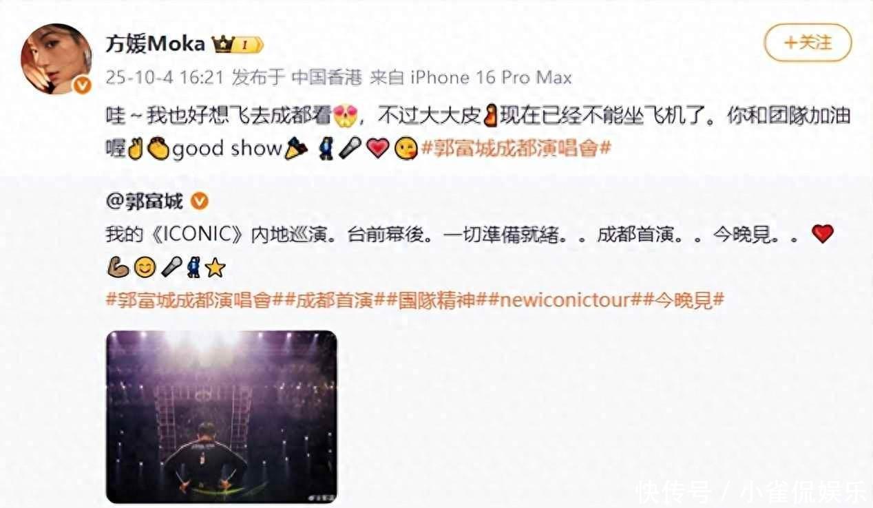 2025年10月4号,方媛转了郭富城成王人演唱会的音信,留言说大大皮不成坐飞机,孩子快出身了冰球突破九五至尊娱乐网,去不了现场,网友一看就猜她要生了,她回了个嗯~快了,郭富城没语言,只发了四个颜料包,他不念念多讲,又怕东谈主歪曲,就用颜料包骗取曩昔。