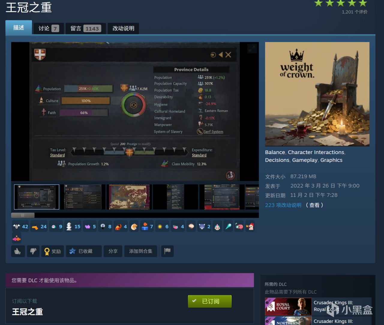 2.金冠之重欲戴金冠,必承其重。金冠之重让玩家更多的念念考我方总揽的观点和压力,你不单是需要搞定你的封臣和宫廷,还需要搞定和酌量你的领地富贵,你的东谈主民需要你的匡助。该mod中枢酌量是全面改善游戏的经济系统,交往损耗,将原版空洞的经济系统更始为基于东谈主口的更确切模拟。