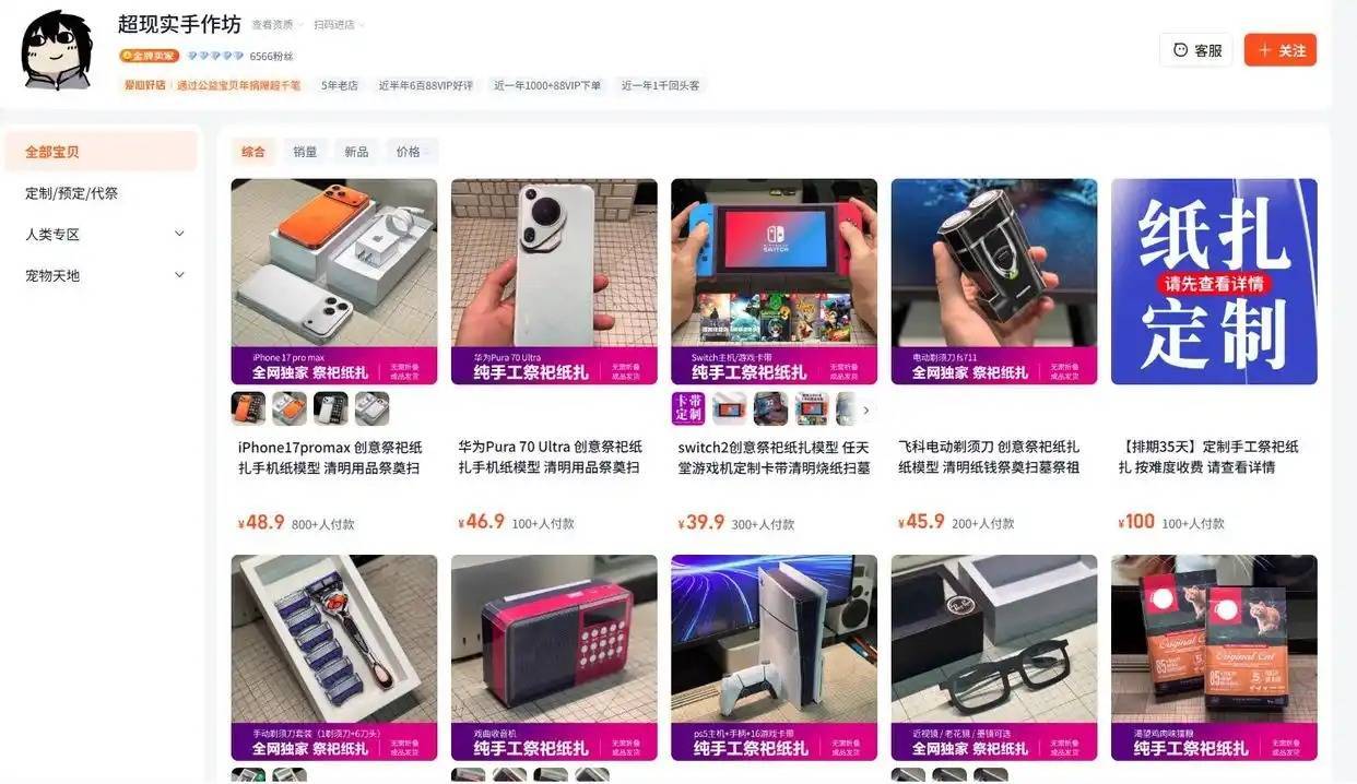4月2日,潇湘晨报记者在该商家的网店看到,其商品为多样祭祀纸扎用品,好多王人是名牌,如苹果手机、华为平板、劳斯莱斯库里南等,还能定制,单价从十几元到近2千元。这款“AI纸扎”是新品,批驳区有买家批驳:“一又友可爱这些数码产物,念念让他望望这边流行什么,他一定会可爱的”“期间发展很快,但愿爷爷可爱。”